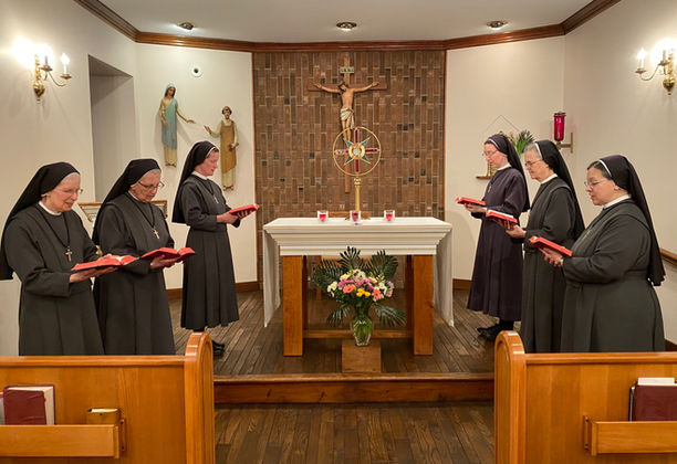 As religious, the Eucharist is the center of our daily prayer. We participate at daily Mass and receive Communion. Daily meditations and frequent Adoration of the Blessed Sacrament center our lives. Our liturgical life is enriched by the recitation of the Liturgy of the Hours which we pray in union with the whole Church. Our community is dedicated to our Blessed Mother under the title of Our Lady of Light. The rosary and her litanies are part of our daily devotion. We also consecrate ourselves to the Sacred Heart of Jesus and work to remain close to his heart at all times.